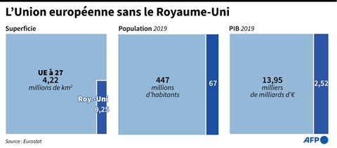 | Comparaisons de la population, du PIB et de la superficie de l'UE à 27 et du Royaume-Uni. |