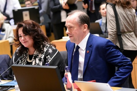 | Le secrétaire d'État britannique pour le Brexit, Martin Callanan à Bruxelles, le 12 novembre. |