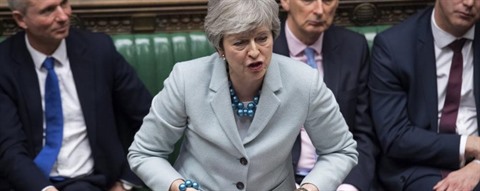 | La Première ministre britannique Theresa May devant les députés britanniques au Parlement, le 25 mars à Londres. |