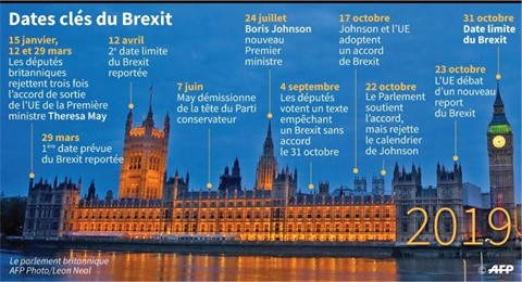 Le Royaume-Uni, qui s'est prononcé par referendum en juin 2016 pour une sortie de l'UE, devait initialement partir le 29 mars, une date déjà repoussée à deux reprises (12 avril, 31 octobre).