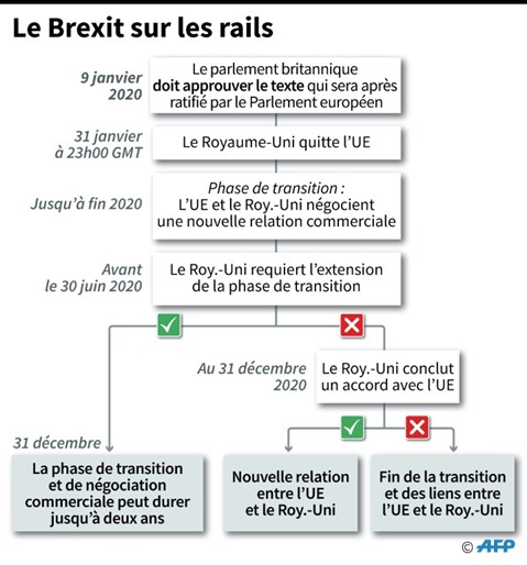 | Le calendrier et les options du Brexit après le vote le 9 janvier du parlement britannique. |