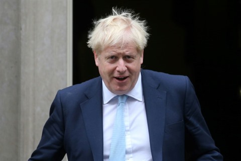 | Le Premier ministre britannique Boris Johnson sort du 10 Downing Street, le 3 octobre à Londres. |