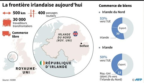 La manière d'éviter le retour d'une frontière physique entre la province britannique d'Irlande du Nord et la République d'Irlande, afin de préserver l'accord de paix de 1998, demeure un point de désaccord majeur.