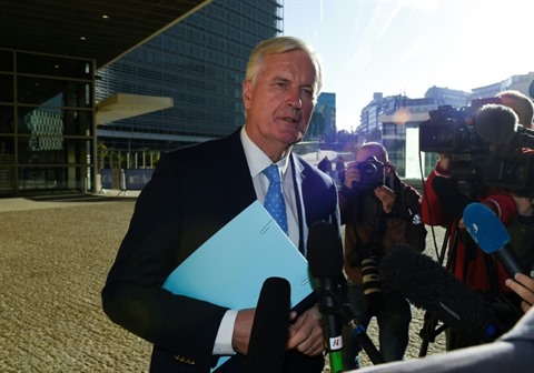 | Le négociateur de l'UE sur le Brexit, Michel Barnier, répond aux questions des journalistes, le 28 octobre à Bruxelles. |