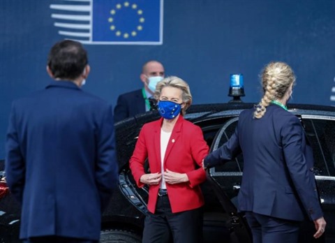| La présidente de la Commission européenne, Ursula von der Leyen, le 1er octobre à son arrivée au sommet européen à Bruxelles. |