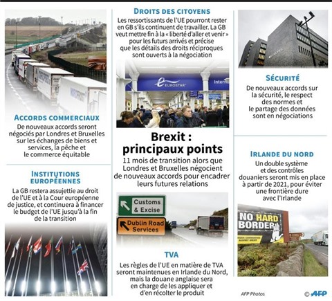 | Les principaux points concernant la négociation de nouveaux accords pour le Brexit, notamment sur le plan commercial, pour encadrer les futures relations |