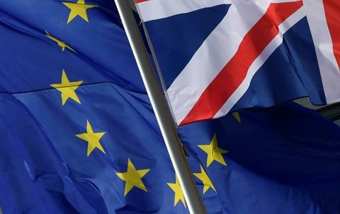 | Les drapeaux du Royaume-Uni (droite) et de l'Union européenne à Berlin, le 9 avril. Photo: AFP/VNA/CVN |