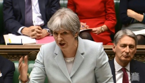| La Première ministre britannique Theresa May lors d'un discours à la Chambre des communes à Londres, le 5 mars. |
