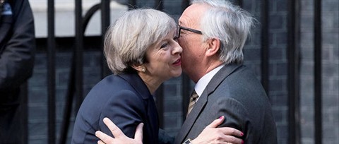 | Le président de la Commission européenne Jean-Claude Juncker et la Première ministre Théresa May, le 26 avril. |