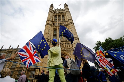 | Des manifestants pro-UE se sont rassemblés devant le Parlement britannique le 12 juin. |
