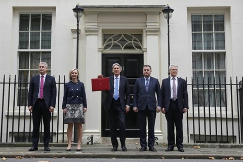 | Stephen Barclay (gauche), le 22 novembre 2017 devant le 11, Downing Street. |