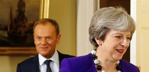 La Première ministre britannique Theresa May et le président du Conseil européen Donald Tusk, le 1er mars à Londres. Photo : AFP/VNA/CVN |