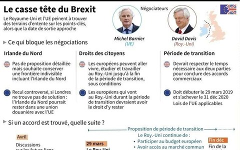Graphique montrant les difficultés des négociations du Brexit entre l'UE et le Royaume Uni. Photo : AFP/VNA/CVN |