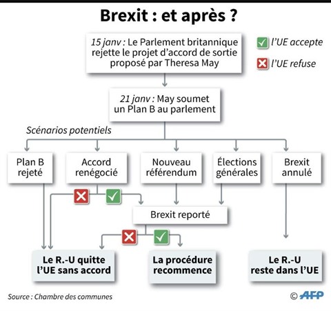 | Les différents scénarios possibles dans le processus du Brexit. |