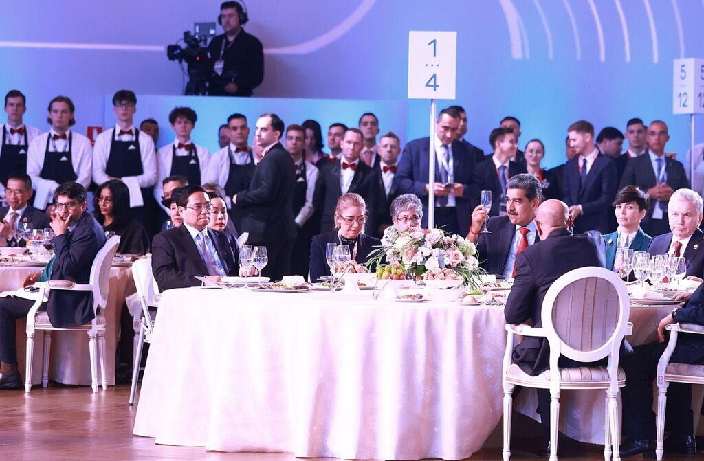 | Le Premier ministre vietnamien et les autres chefs d'État et de gouvernement à la réception donnée par le président russe Vladimir Poutine, président des BRICS 2024. |