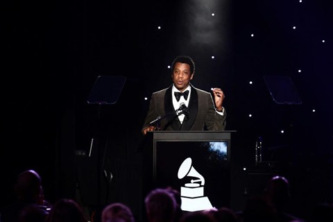 | Jay-Z reçoit un prix lors d'un gala organisé à New York par le producteur Clive Davis à la veille des 60e Grammy Awards, le 28 janvier |