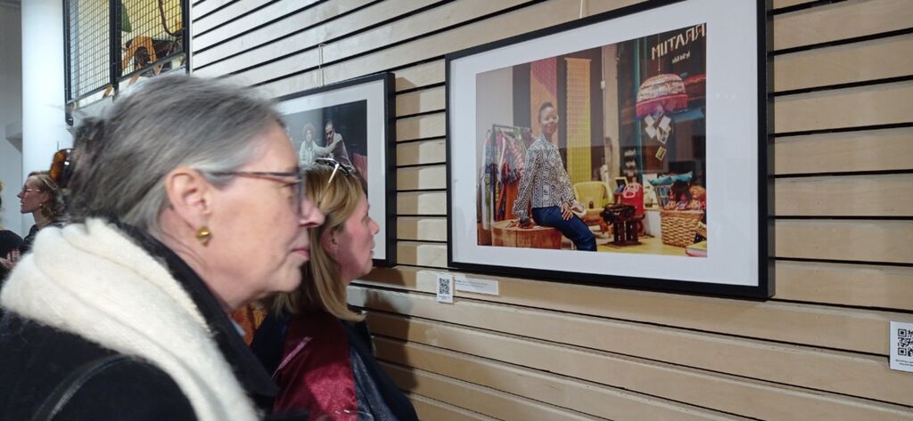 | Des visiteurs à l’exposition “Un pied ici, un pied là-bas, Bruxelles, Carrefour des diasporas”. |
