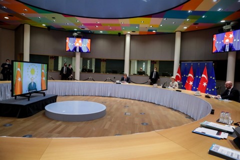 Le président turc a montré une volonté d'apaisement fin 2020, après de fortes tensions avec l'UE liées à plusieurs missions turques d'exploration gazière dans des eaux grecques et chypriotes en Méditerranée orientale.