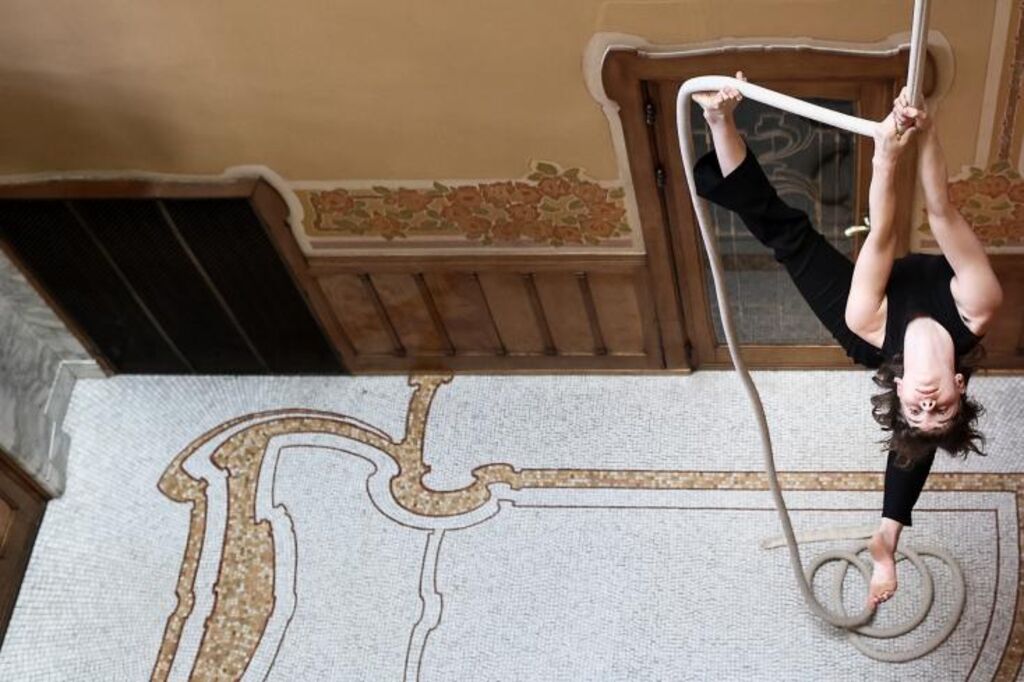 | Une acrobate participe au projet "Arabesque", à la maison Art Nouveau conçue par Victor Horta, le 14 mai à Bruxelles. |