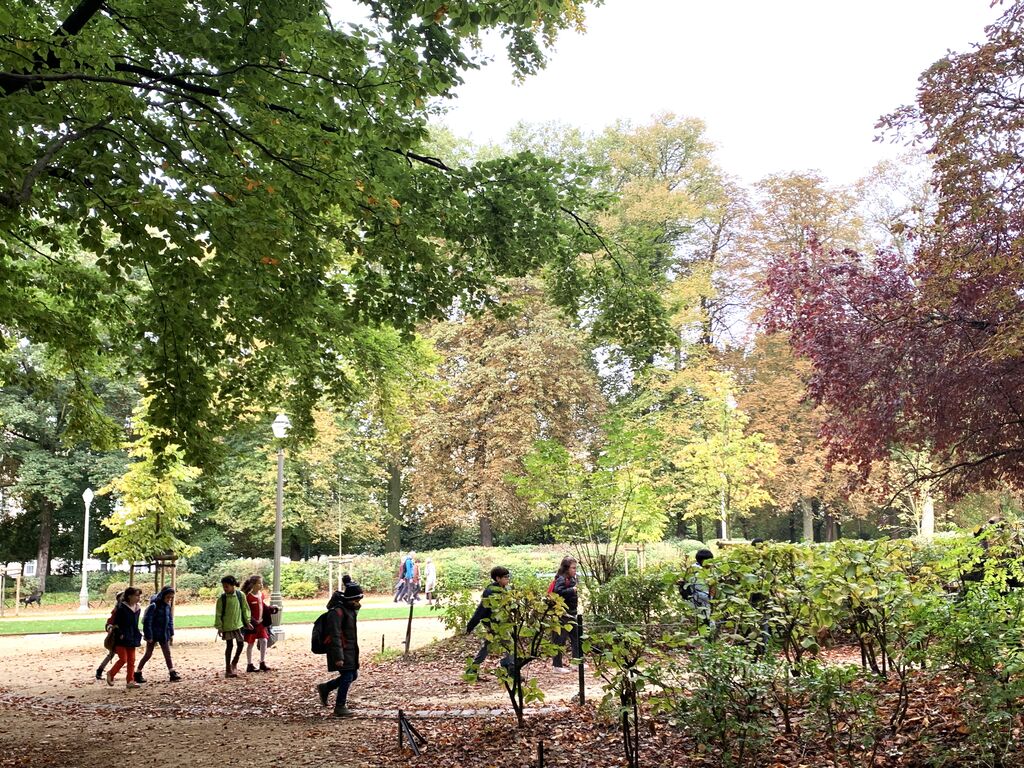 | Des enfants se promènent dans un parc à Bruxelles. |