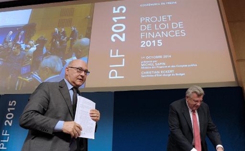 | Le ministre français des Finances, Michel Sapin, et le secrétaire d'État au Budget, Christian Eckert (droite), le 1er octobre à Paris. |