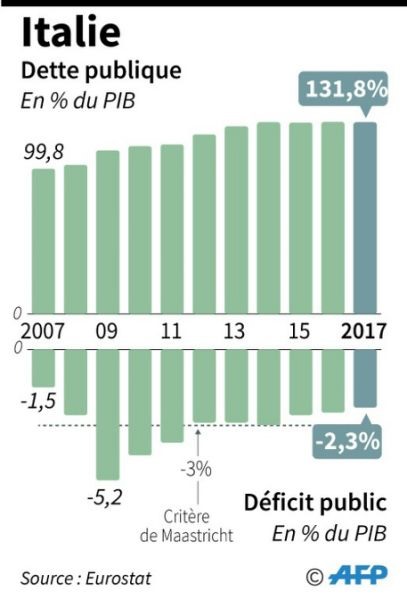 L'Italie ploie déjà sous une dette de 2.300 milliards d'euros, qui représente quelque 131% de son PIB.