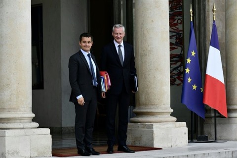 | Le ministre des Comptes publics, Gérald Darmanin (gauche), et celui de l'Économie et des Finances, Bruno Le Maire, à l'Élysée le 24 septembre. |