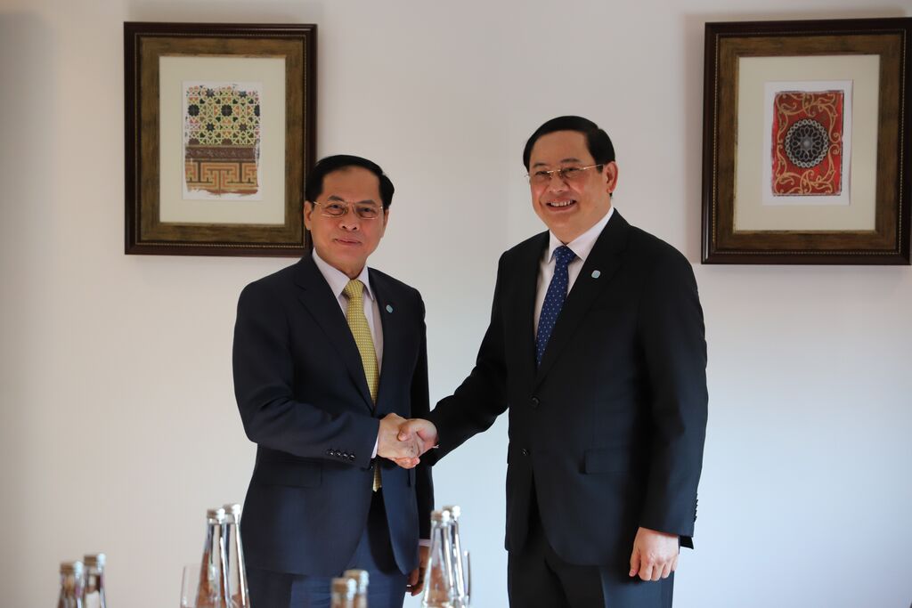 Lors d'une brève rencontre avec le vice-Premier ministre et ministre des Affaires étrangères Thanh Son, le vice-président des Émirats arabes unis (EAU), Mansour bin Zayed Al Nahyan, a souligné que son voyage de travail montrait la ferme détermination du gouvernement vietnamien à promouvoir la réalisation des engagements de haut niveau entre les deux pays, démontrant aussi le respect et la détermination des deux pays à resserrer les liens bilatéraux.