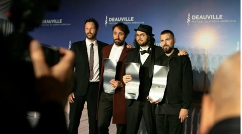 | De gauche à droite : le réalisateur Kyle Marvin, le comédien Michael Angelo Covino ainsi que les réalisateurs Carlo Mirabella Davis et Robert Eggers, le 14 septembre à Deauville. |