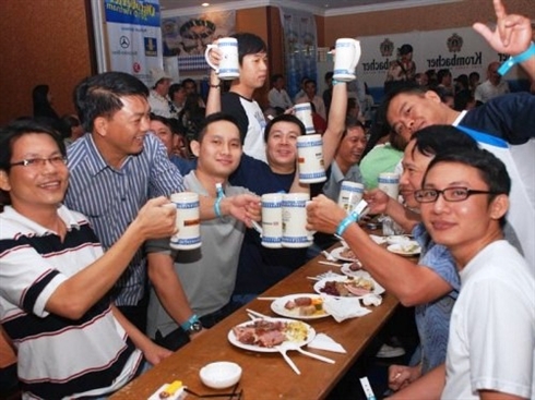 Si le thé, ou l’eau chaude, reste encore la boisson d’accueil lorsque l’on arrive inopinément chez quelqu’un, la «bia», comme on dit ici, se retrouve dans toutes les occasions de convivialité : repas, pots entre amis, beuveries entre âmes esseulées, détente à l’ombre fraîche d’un tamarinier… En canettes, en bouteilles, à la pression, elle se décline sous toutes les formes, avec pour seul but de se rafraîchir l’intérieur en été et de réchauffer l’atmosphère en hiver. Enfin, ce que je vous en dis…, moi qui ne suis qu’un consommateur d’eau !