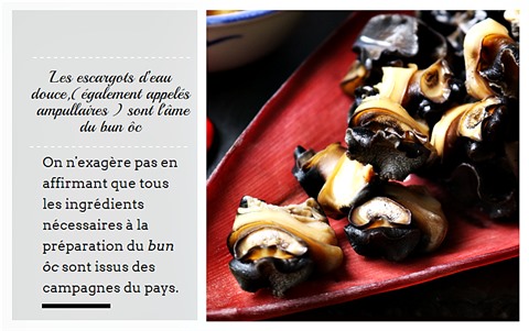 On vous le dira, déguster un bol de bun ôc c’est comme prendre un bon bol d’air de la campagne vietnamienne, de celle avec ses rizières vertes à perte de vue, ses villages paisibles entourés de massifs et de bambous, ses troupeaux de buffles qui ruminent le long des chemins vicinaux...