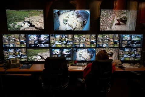 | Les écrans de la "panda cam" au Smithsonian's National Zoo de Washington le 14 novembre. |