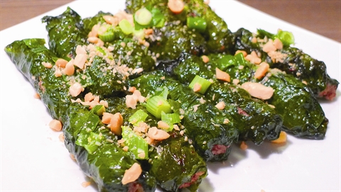 - Placer les rouleaux de bœuf sur un plat et parsemer de cacahuètes concassées