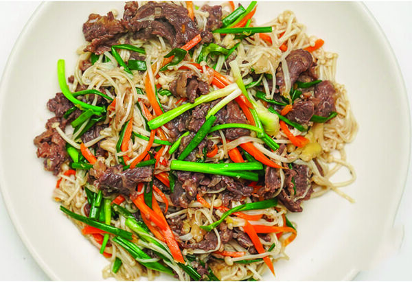- Lavez la viande de bœuf, puis tranchez-la en fines lamelles.