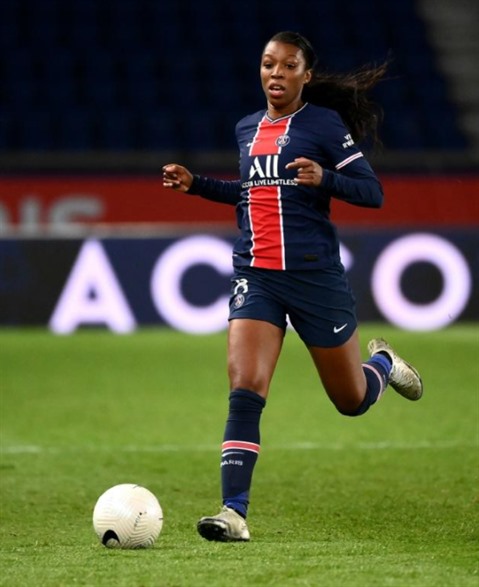 | L'attaquante du Paris SG, Marie-Antoinette Katoto, lors d'un match de D1 contre Lyon au Parc des Princes le 20 novembre 2020. |