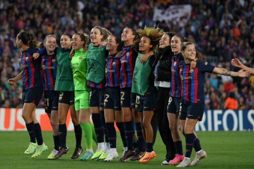| La joie des Barcelonaises, qualifiées pour la finale de la Ligue des champions féminine aux dépens de Chelsea, le 27 avril au Camp Nou. |