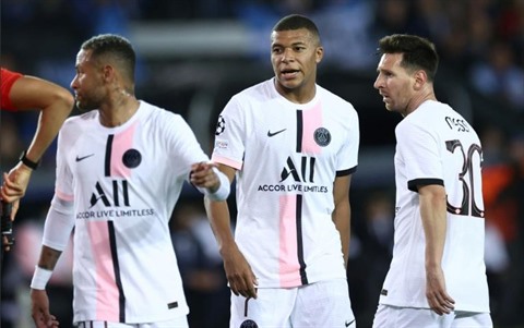 | Neymar, Kylian Mbappé et Lionel Messi ont évolué ensemble pour la première fois lors de la rencontre entre le PSG et Bruges (1-1), le 15 septembre, à l'occasion de la première journée de phase de poules de C1. |
