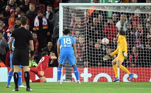 | L'attaquant portugais de Liverpool, Diogo Jota, ouvre le score à domicile face à l'Atlético Madrid, lors de la 4e journée de la Ligue des Champions, le 3 novembre. |
