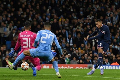 | L'attaquant du PSG, Kylian Mbappé, ouvre le score face à Manchester City, le 24 novembre à l'Etihad Stadium. |