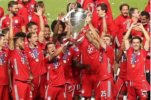 | Le Bayern Munich vainqueur de la Ligue des champions contre le Paris SG, le 23 août 2020 à Lisbonne. |