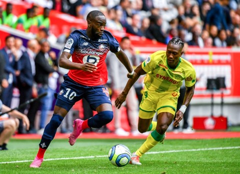 | Jonathan Ikoné (gauche), attaquant de Lille, face au défenseur nantais Charles Traoré, le 11 août à Villeneuve-d'Ascq. |
