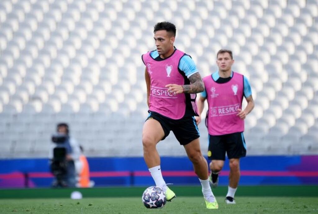 | L'attaquant de l'Inter Milan Lautaro Martinez, à l'entraînement au stade Atatürk à Istanbul, le 9 juin. |
