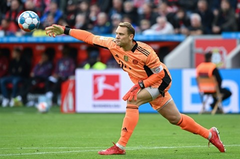 | Le gardien de but du Bayern Munich, Manuel Neuer, lors du match de la 8e journée de Bundesliga, le 17 octobre 2021 sur la pelouse du Bayer Leverkusen. |