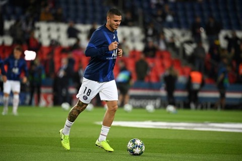 | La recrue du PSG, Mauro Icardi, à l'échauffement avec le match contre le Real Madrid, le 18 septembre au Parc des Princes. |