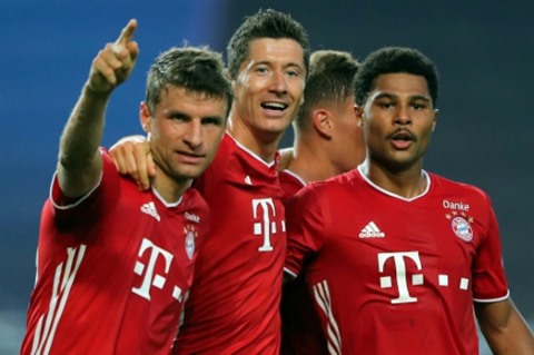 | Les footballeurs du Bayern Munich célèbrent un but lors de la demi-finale de la Ligue des Champions contre Lyon le 19 août. |
