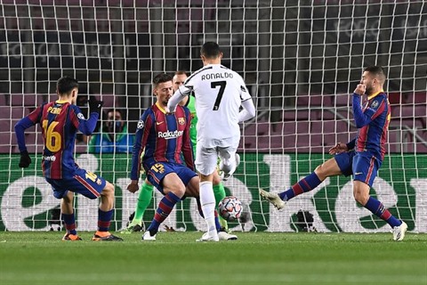 | La défense du Barça aux abois devant la star de la Juventus, Cristiano Ronaldo, au Camp Nou, le 8 décembre. |