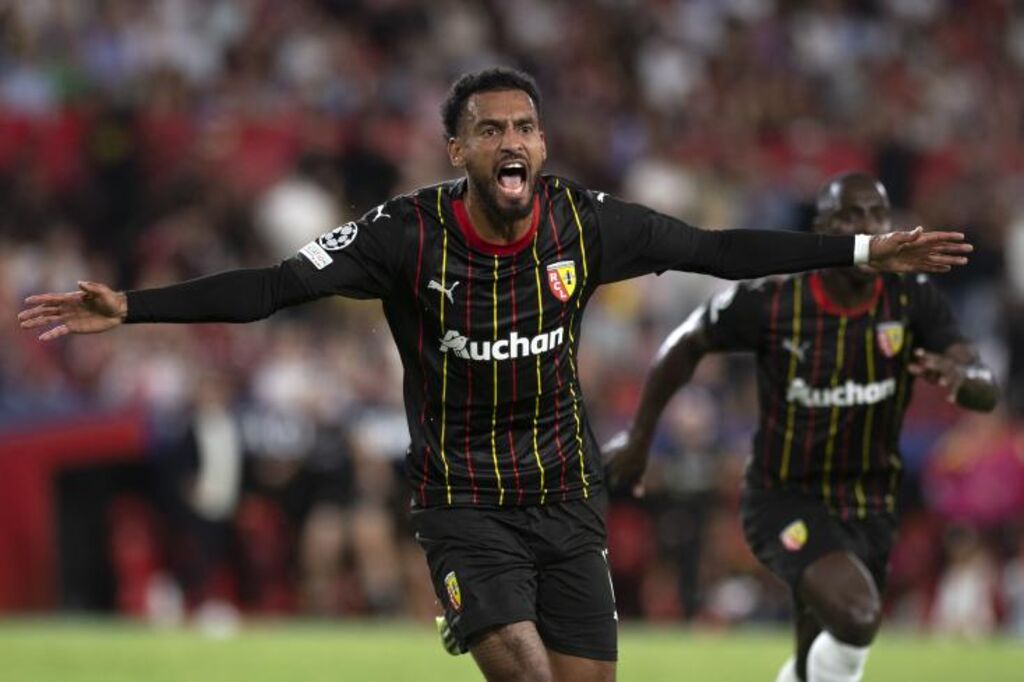 | Le milieu de Lens Angelo Fulgini égalise sur coup franc sur le terrain du Séville FC, le 20 septembre. |