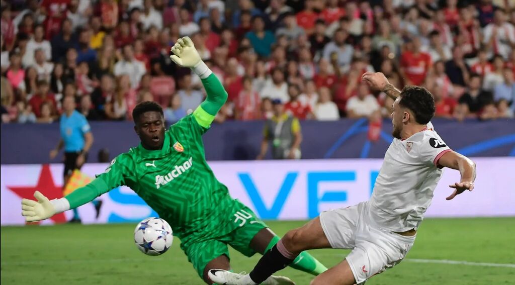 En face, le Séville FC aurait pu inscrire le deuxième but fatal, grâce à un autre entrant, Dodi Lukebakio, auteur d'une reprise de volée (68e) contrée de justesse puis d'une frappe qui a obligé Samba à se détendre (69e).