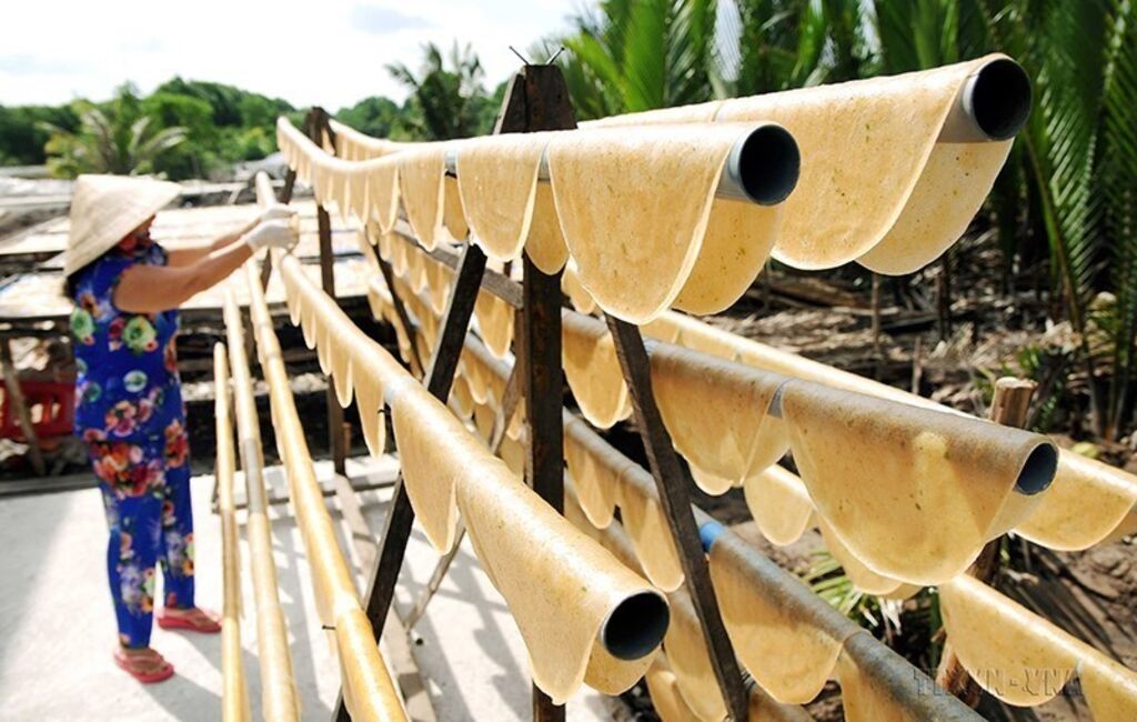 | Transformation des craquelins aux crevettes dans la commune de Dât Mui, district de Ngoc Hiên. |