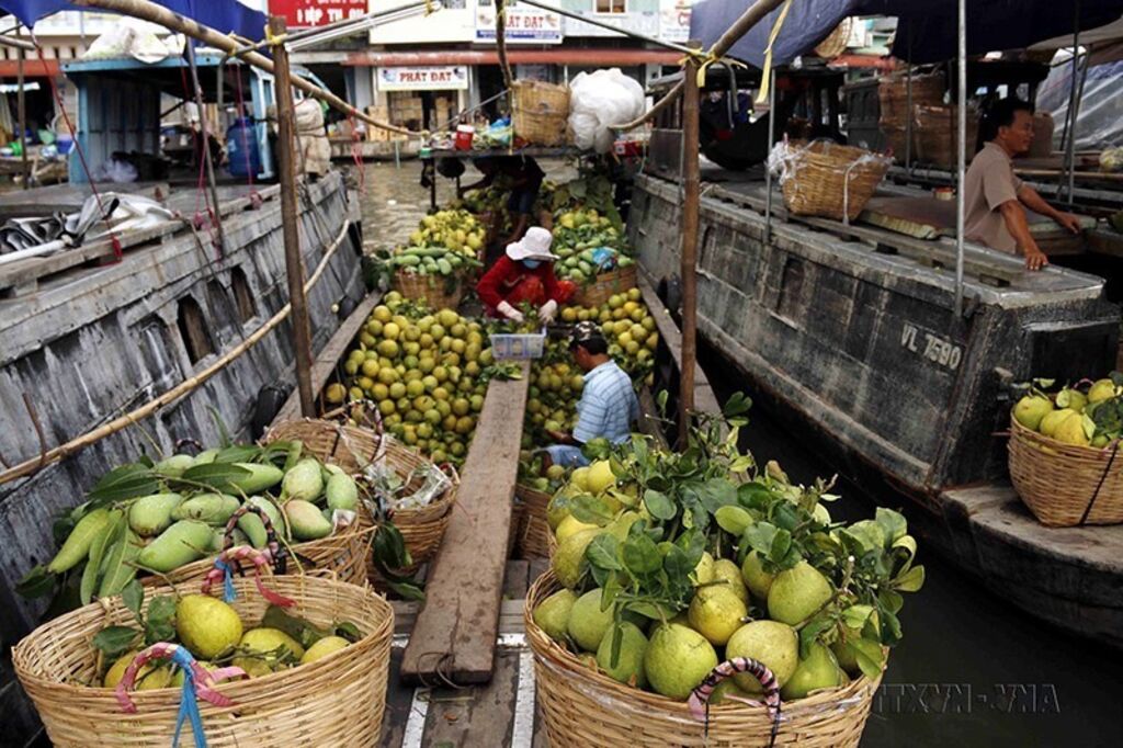 | Les touristes peuvent acheter des fruits frais au marché de Cà Mau. |